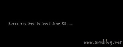5. Եթե ձեր համակարգչի BIOS-ի կարգավորումներում նշված է, որ համակարգիչը առաջնային միանա սկավառակից, ապա պետք է հայտնվի այսպիսի հաղորդագրություն` Booting From CD... կամ Press any key to boot from CD... Այդ ընթացքում անհրաժեշտ է սեղմել Enter:
